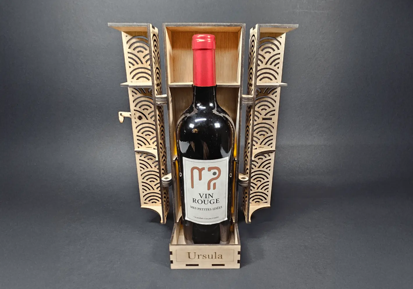 De conception artisanale, cette boîte à vin en bois s’ouvre comme une fenêtre pour révéler élégamment votre bouteille (75cl).