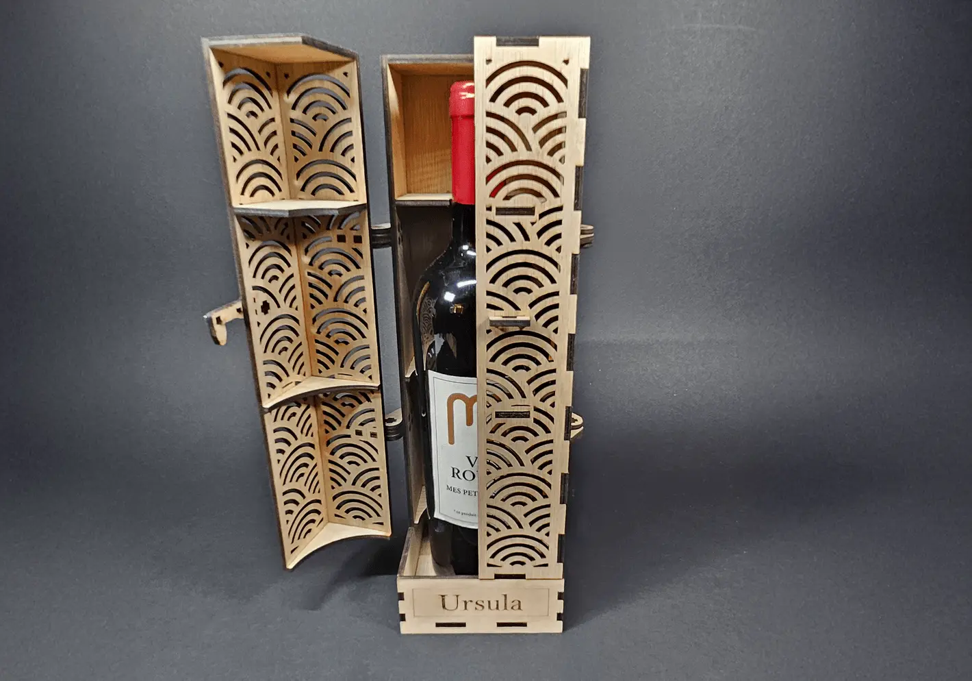De conception artisanale, cette boîte à vin en bois séduit par son ouverture frontale, façon fenêtre, à la fois originale et élégante. Chaque pièce est unique, réalisée avec soin dans un bois naturel, aux finitions soignées. Idéale pour offrir ou présenter une bouteille de 75 cl, elle valorise le vin tout en ajoutant une touche décorative. Sobre, raffinée et réutilisable, elle convient aussi bien aux cadeaux personnels qu’aux événements professionnels. Personnalisable par gravure, elle devient un véritable écrin souvenir. Une belle alternative aux emballages classiques, durable, esthétique et conçue pour sublimer vos plus belles bouteilles.