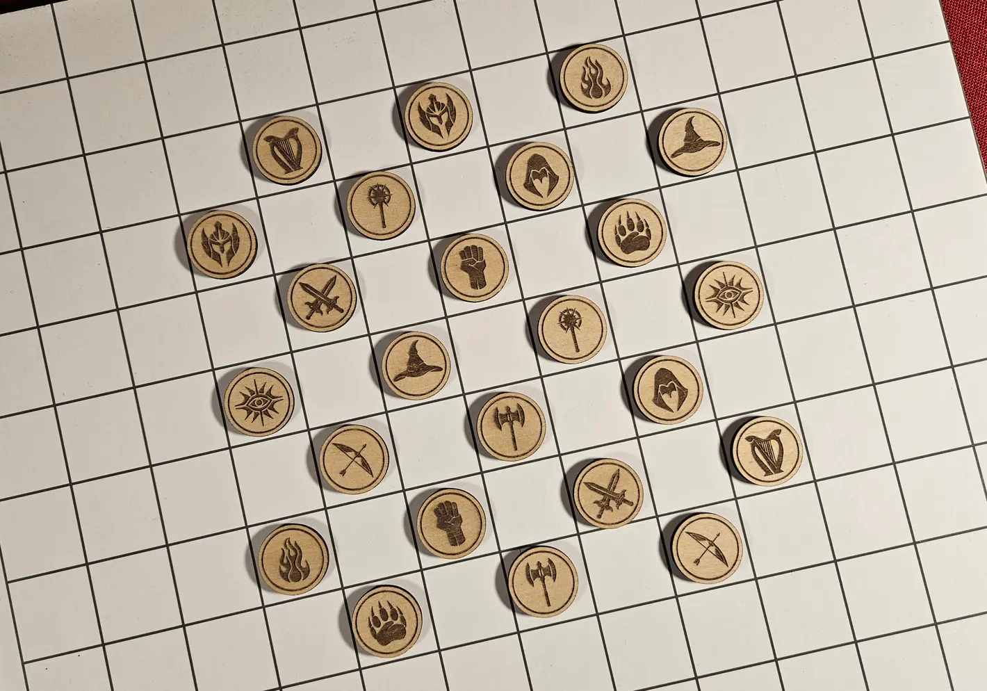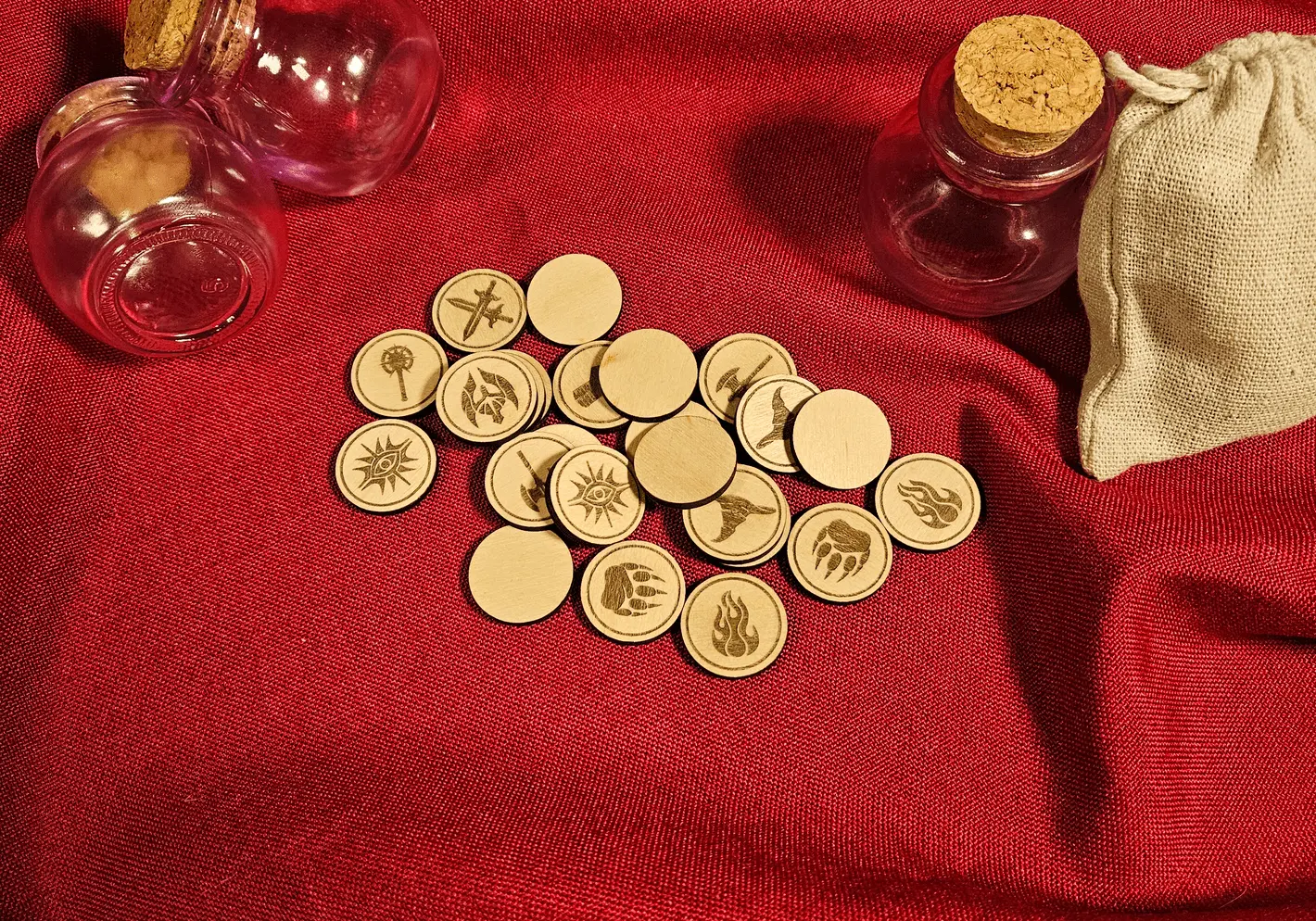 Ajoutez une touche d’organisation et d’immersion à vos parties de Donjons & Dragons et autres JDR grâce à ces jetons de classe 2D en bois brut, conçus pour identifier rapidement chaque joueur sur le plateau.