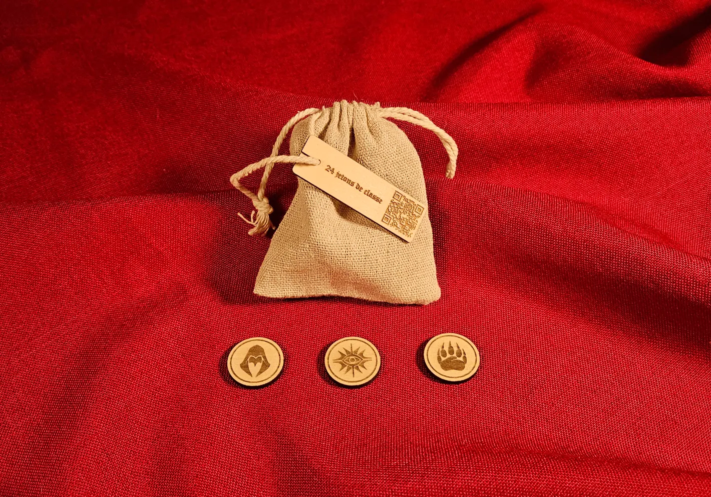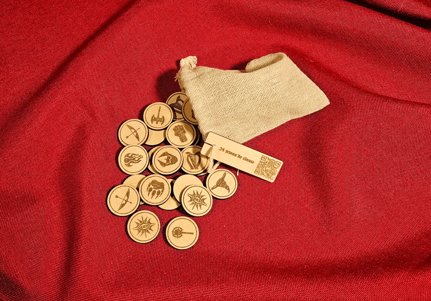 Chaque jeton en bois représente l’une des 12 classes emblématiques du Manuel des Joueurs, permettant aux joueurs de se repérer visuellement lors des déplacements et des combats, tout en renforçant l’immersion autour de la table. Avec ce lot de 24 jetons, chaque joueur pourra utiliser le symbole de sa classe de personnage, et le MJ pourra gérer les interactions ou les PNJ de manière plus fluide.