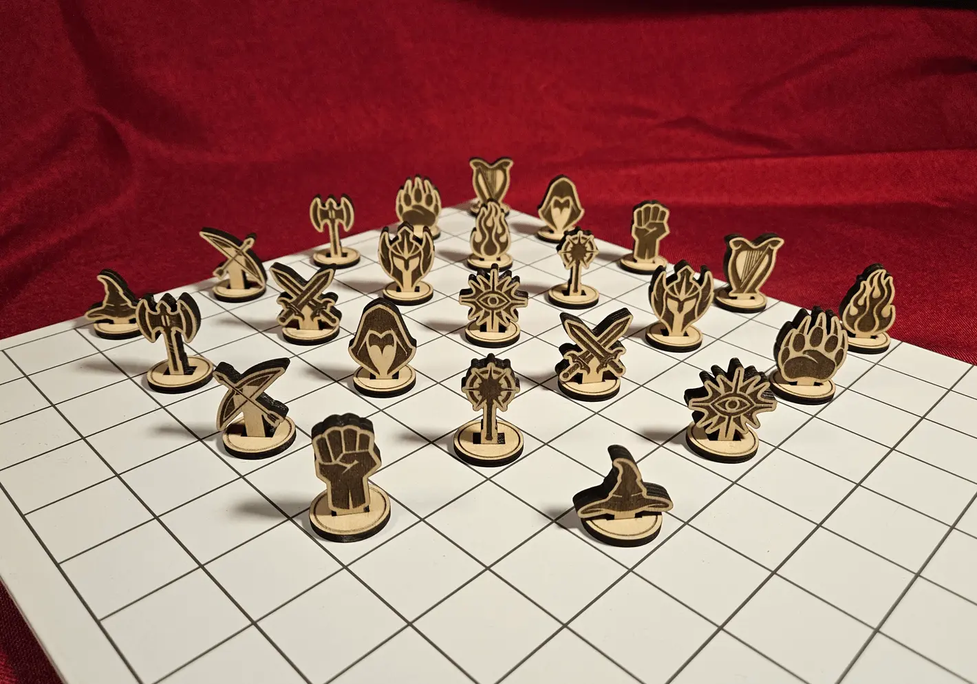 Ces 24 jetons en bois brut représentent les 12 classes emblématiques du Manuel des Joueurs, permettant aux joueurs de marquer leur position et leur rôle sur la table tout en ajoutant une touche tactile qui rend les parties plus vivantes. Contrairement aux versions plates, ces jetons 3D sont plus faciles à saisir pendant les tours de jeu, évitant les déplacements hasardeux sur le plateau.
