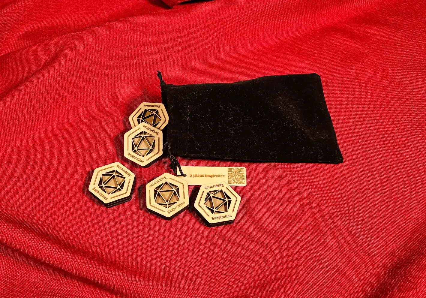 | Contenu | 5 jetons, sac en velours avec étiquette |